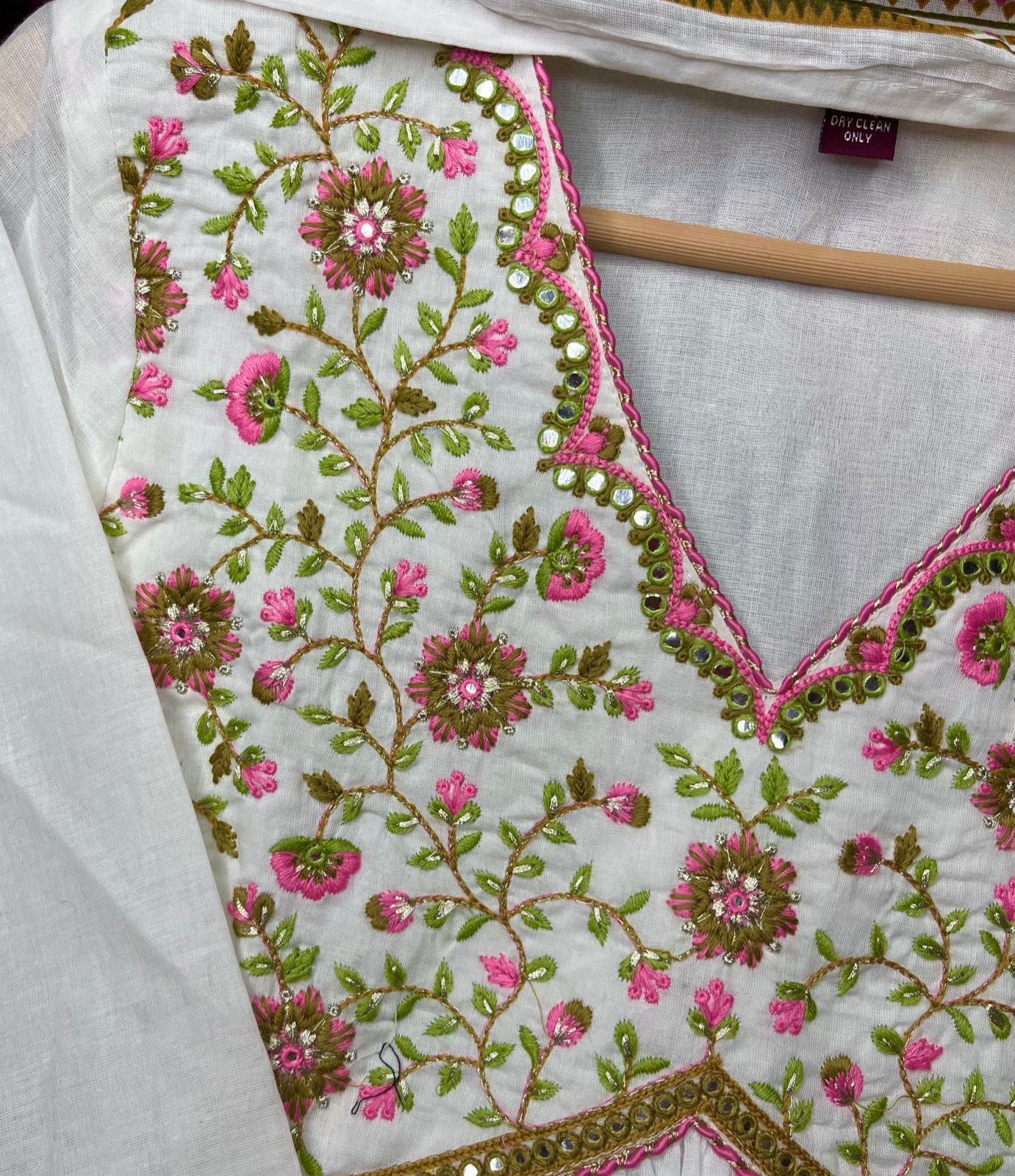 Beautiful Three Piece Digital Designer Floral Print Peplum Style Side Slit Short Malmal Kurti With Work On Yoke Paired With Malmal Cotton Sharara And Digital Designer Floral Print Malmal Dupatta With Tassels