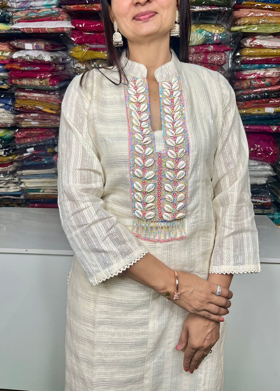 Pure Lurex Cotton Coord Set With Kodi Embroidered Paired With Pure Cotton Pants With Embroidery