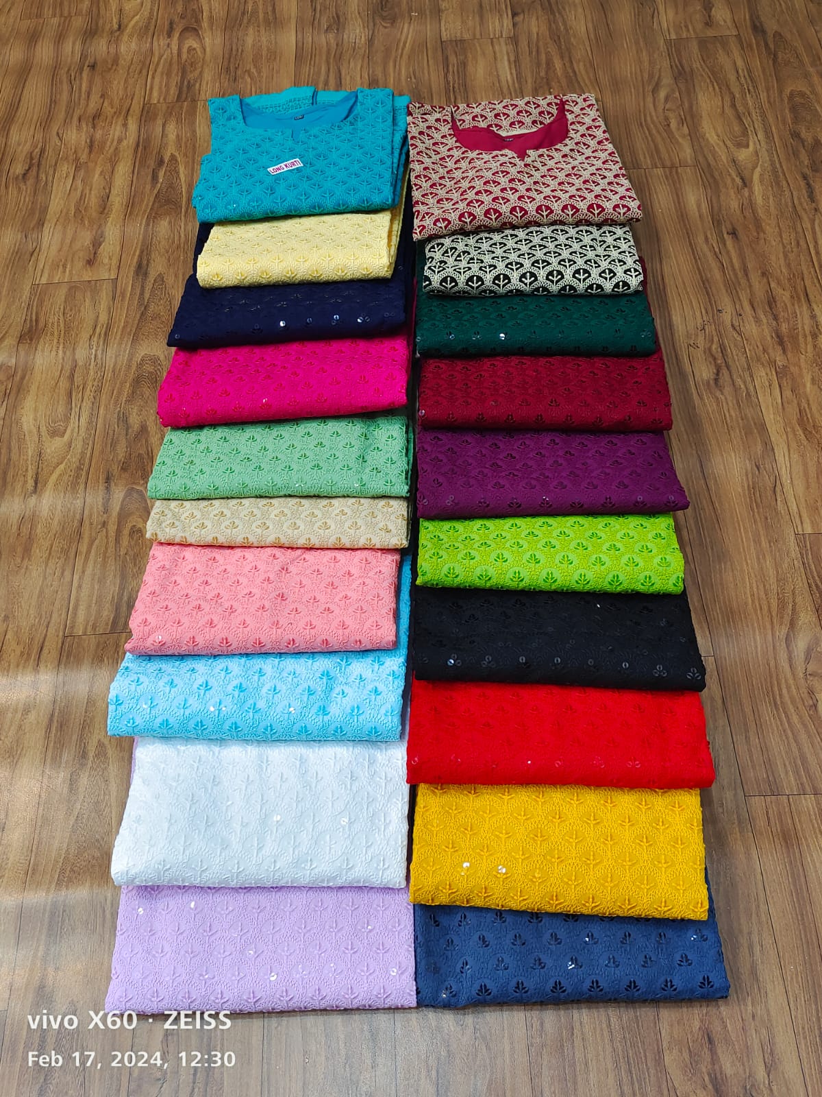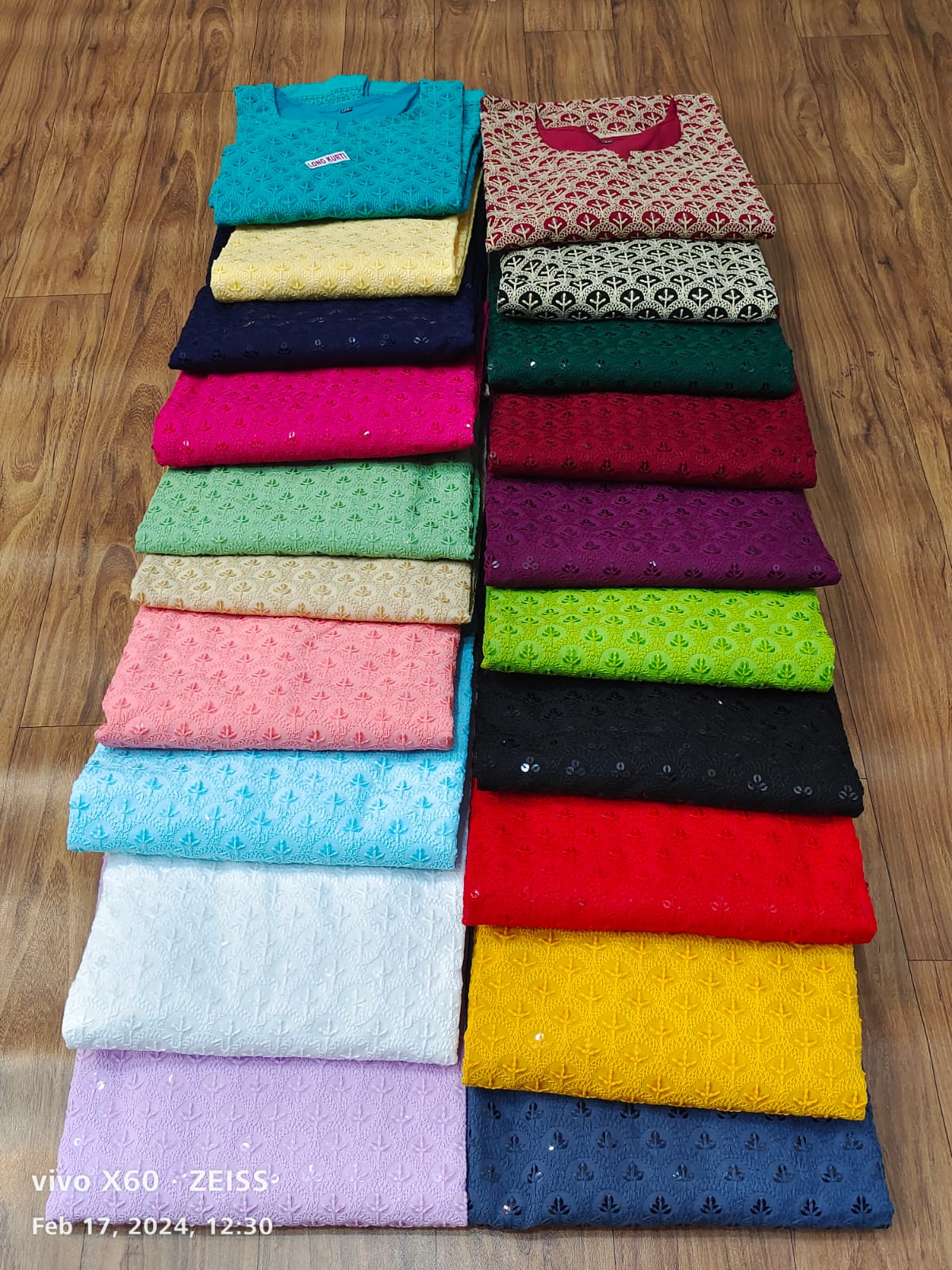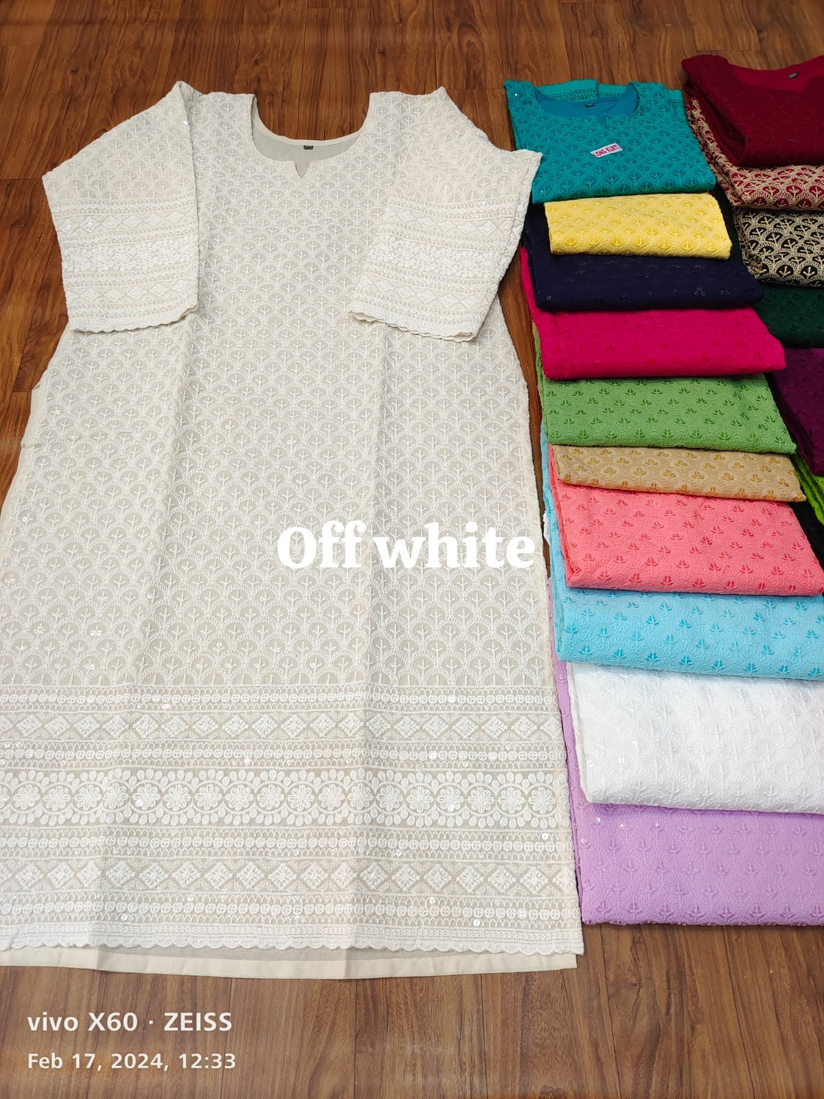 Pure Cotton Fabric Beautiful Chikankari Embroidered Sequins Work Kurtis Motifs May Vary As Per Availability