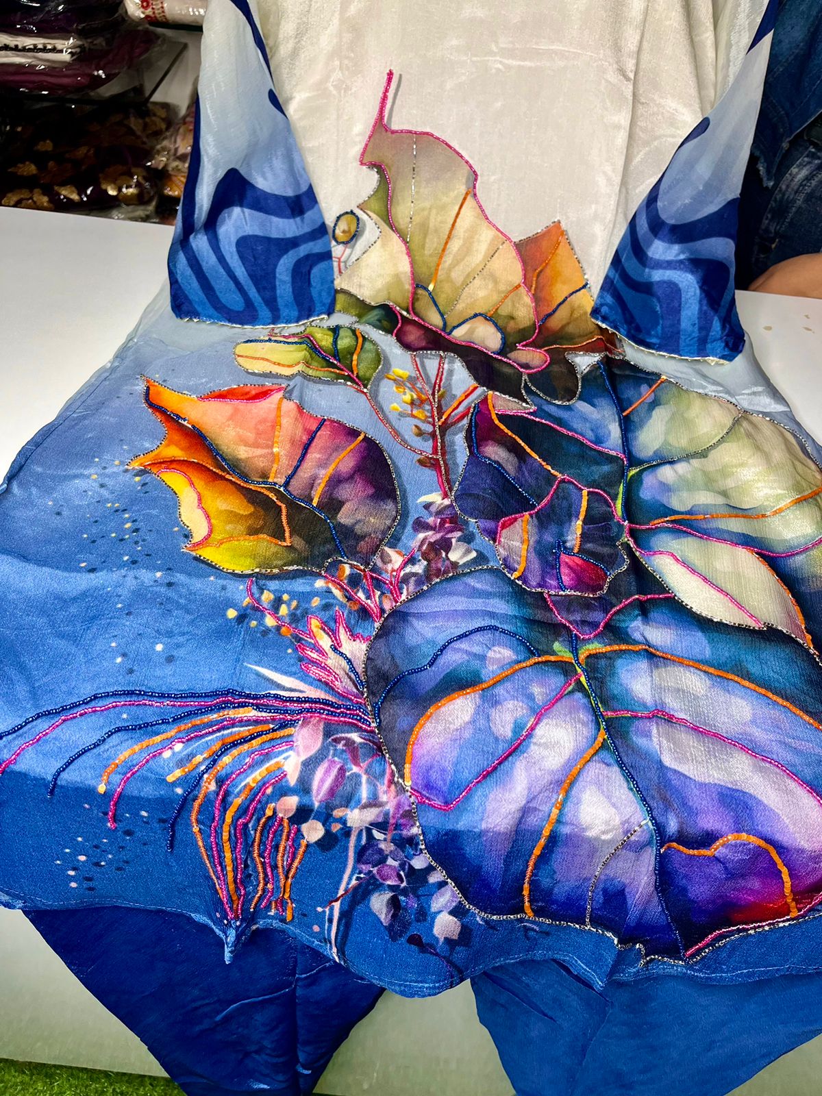 Designer Pure Chinon Digital Print With Hand Embroidered Dhoti Set