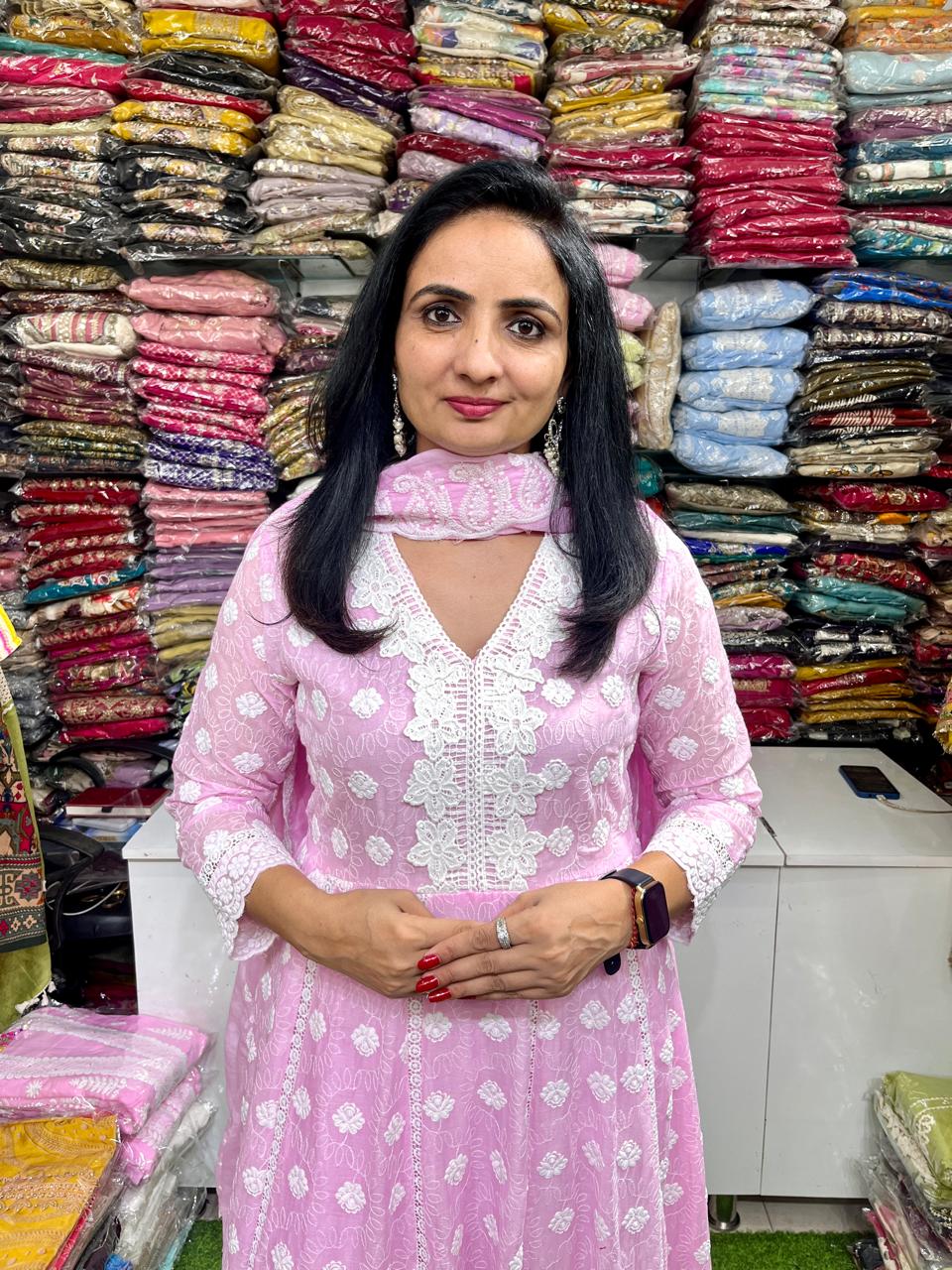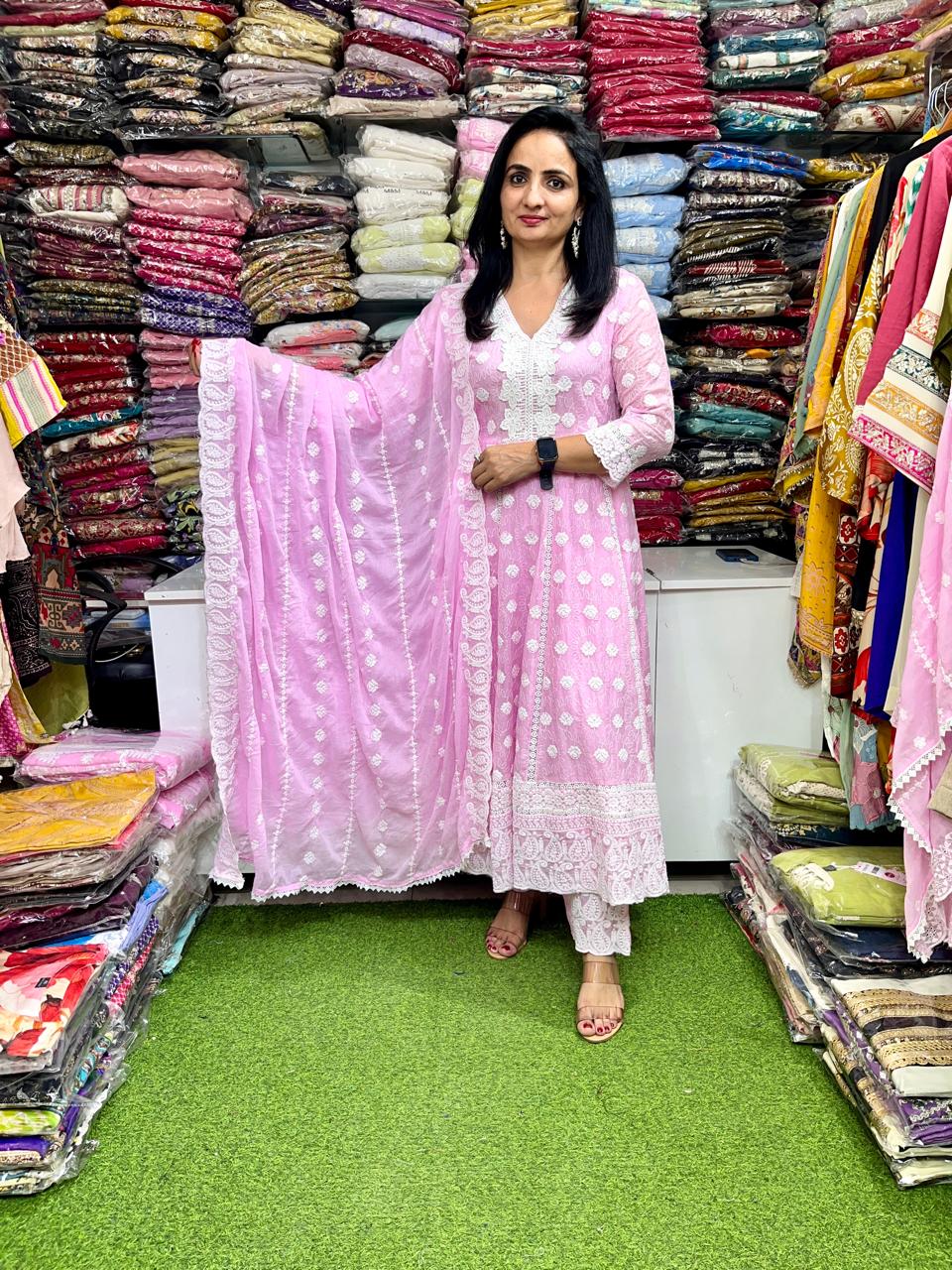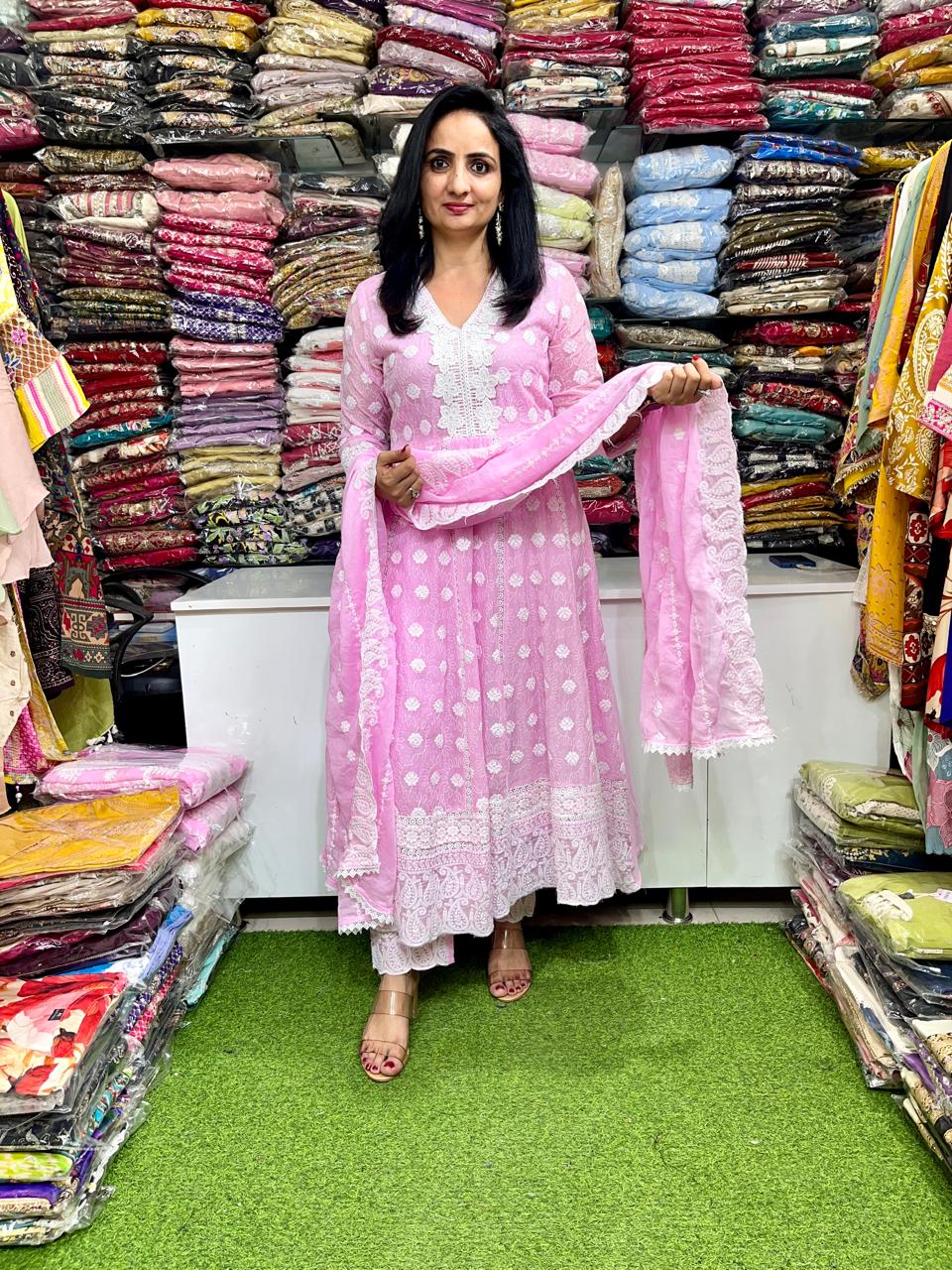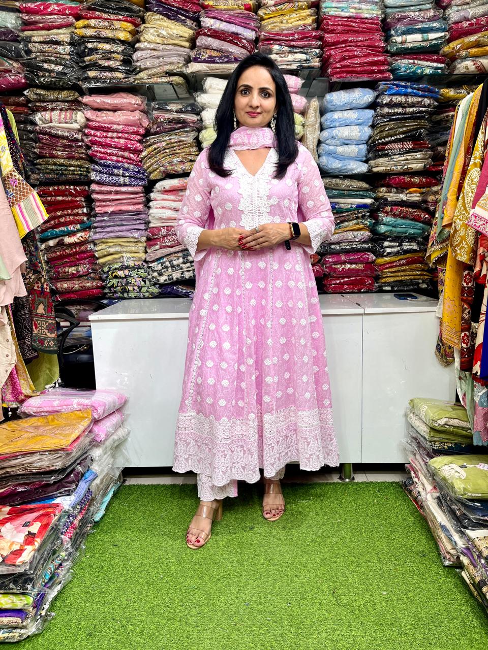 Designer Mal Cotton Chikankari Anarkali Set