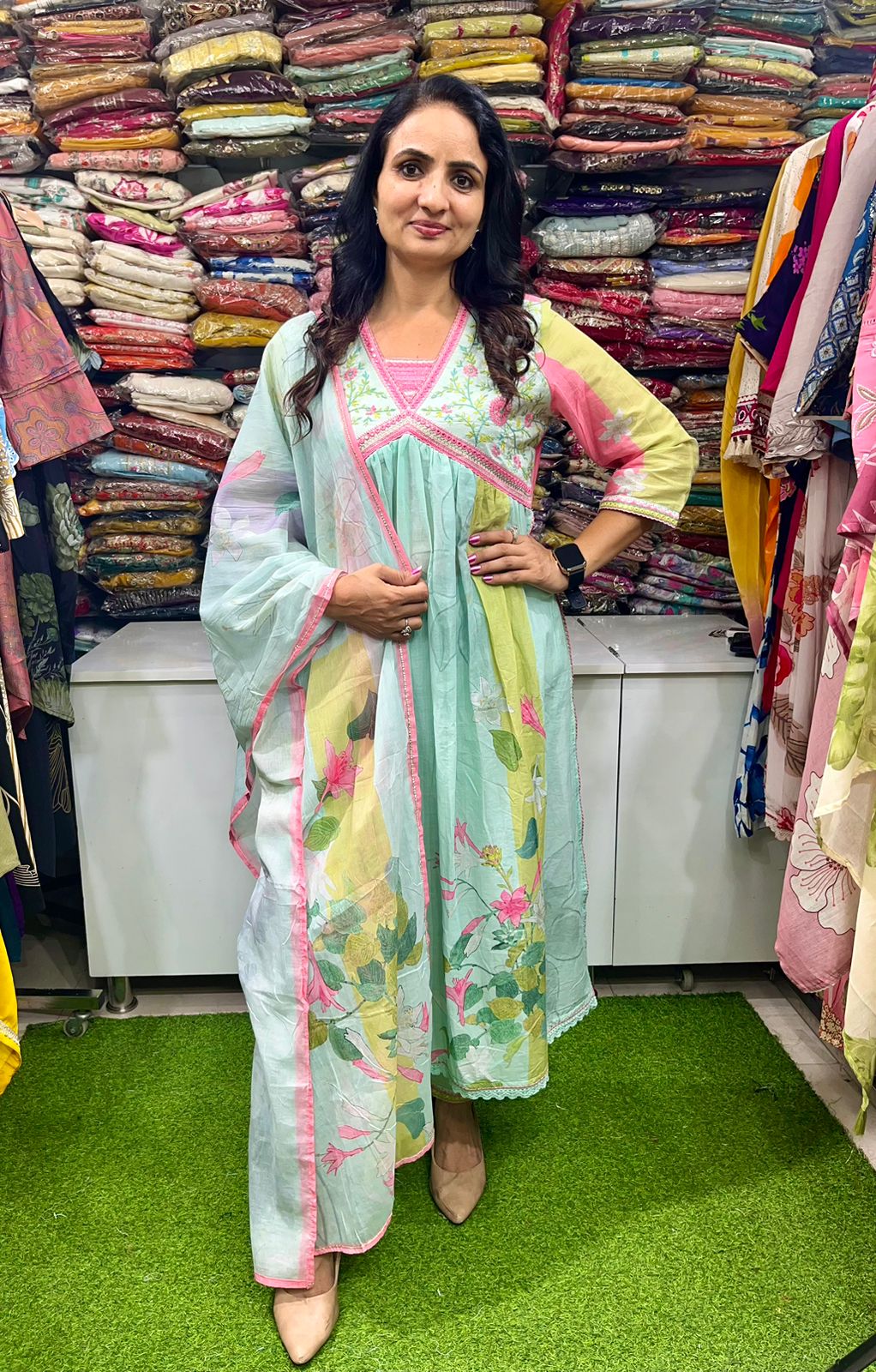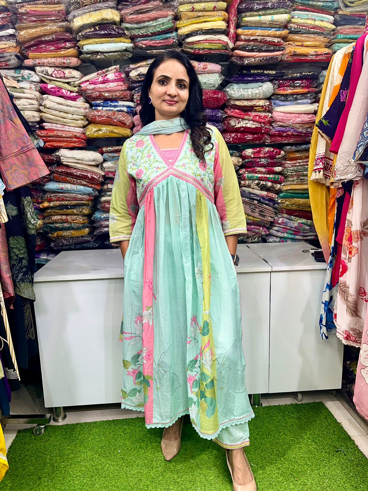 Beautiful Mal Cotton Digital Print Nyra Suit Set with Yoke Embroidery paired with pants and dupatta