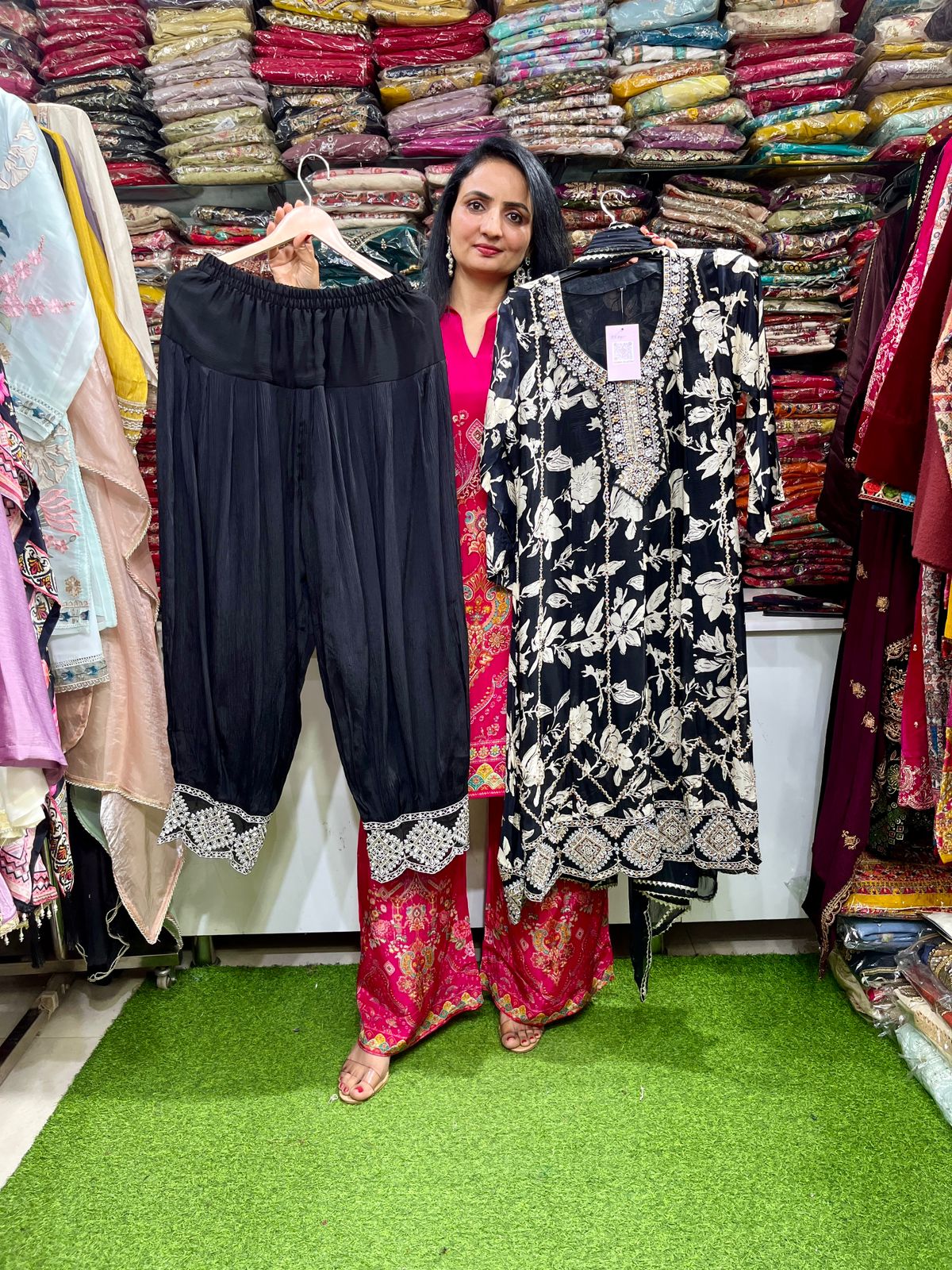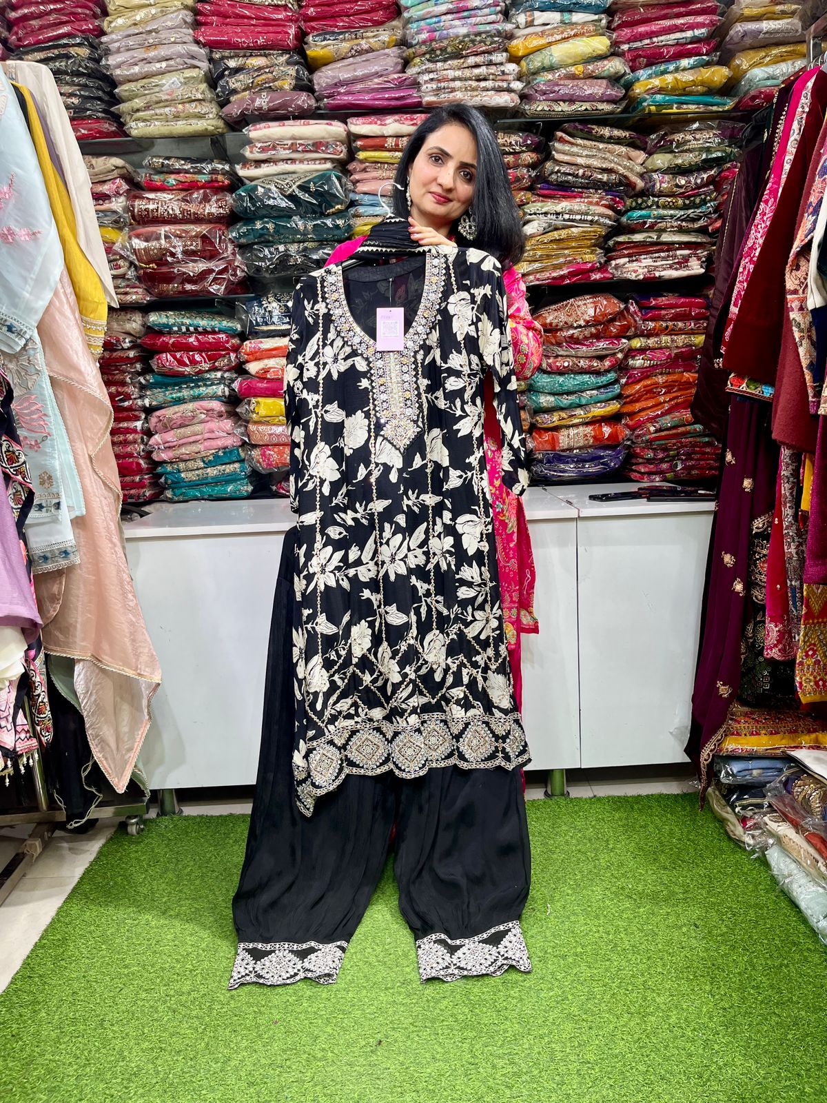 Designer Pure Chinon Anarkali with Farshi Salwar with embroidery