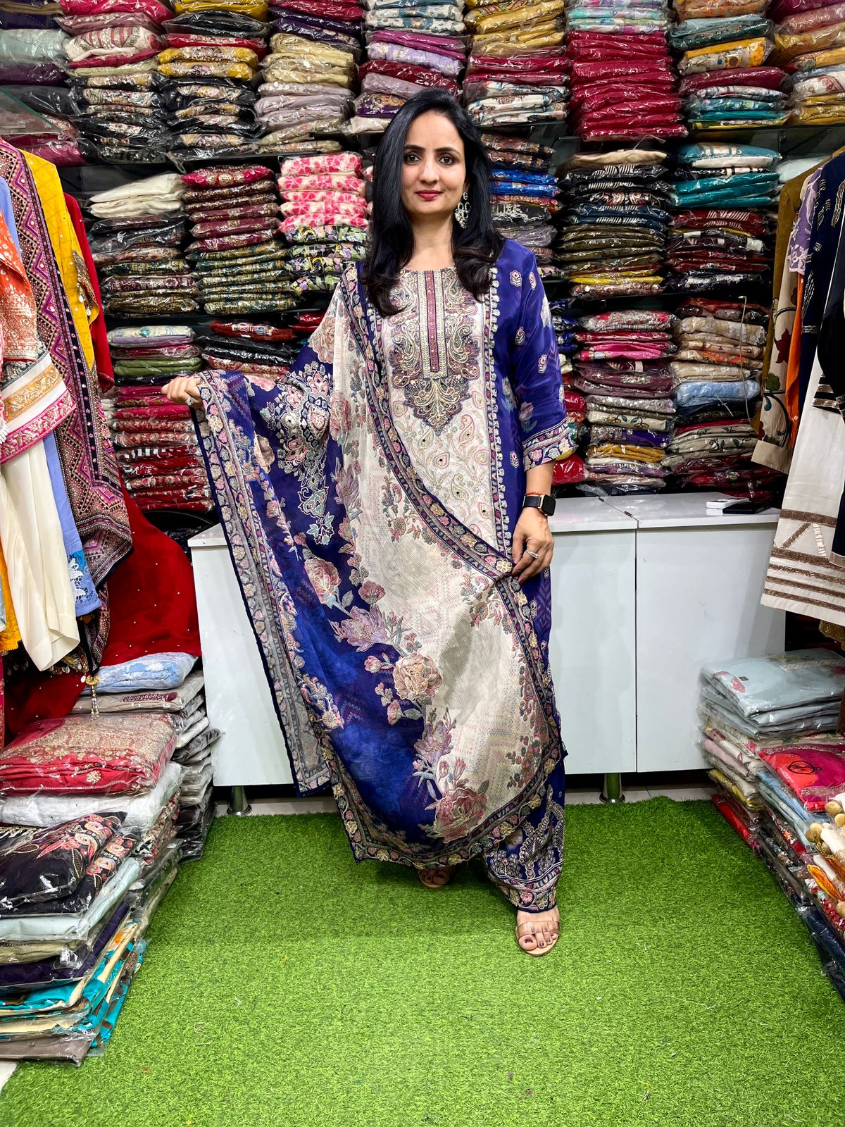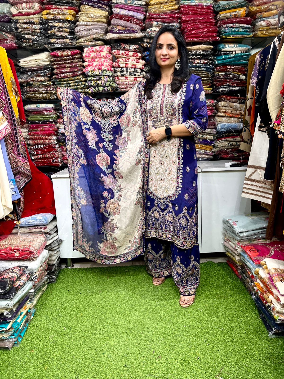 Designer Pure Crape Digital Print with Zari Embroidery Suit Set