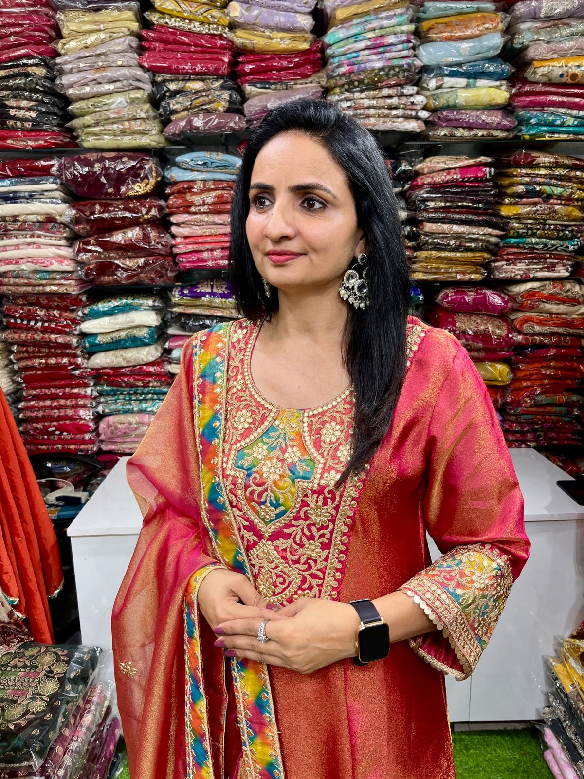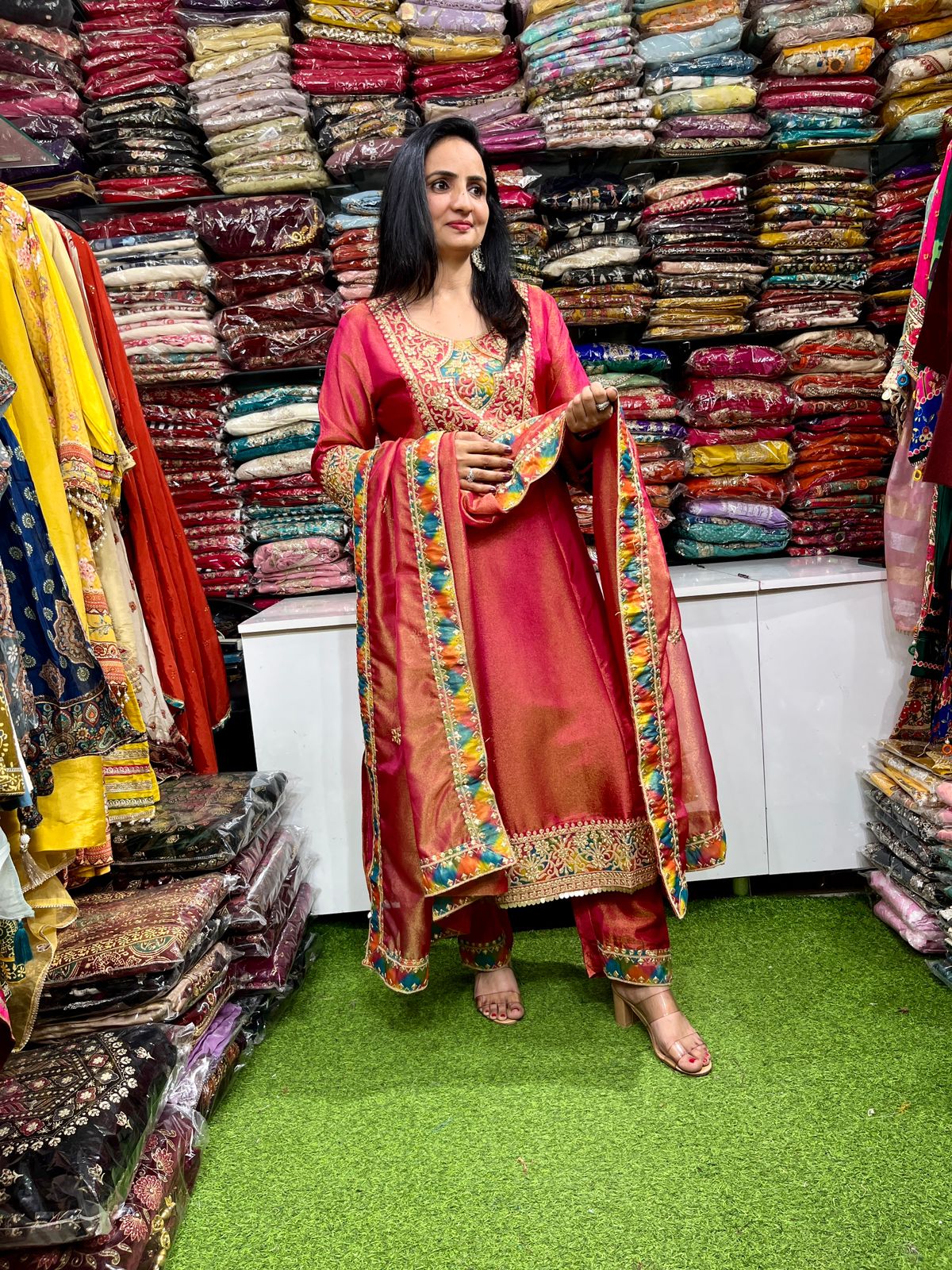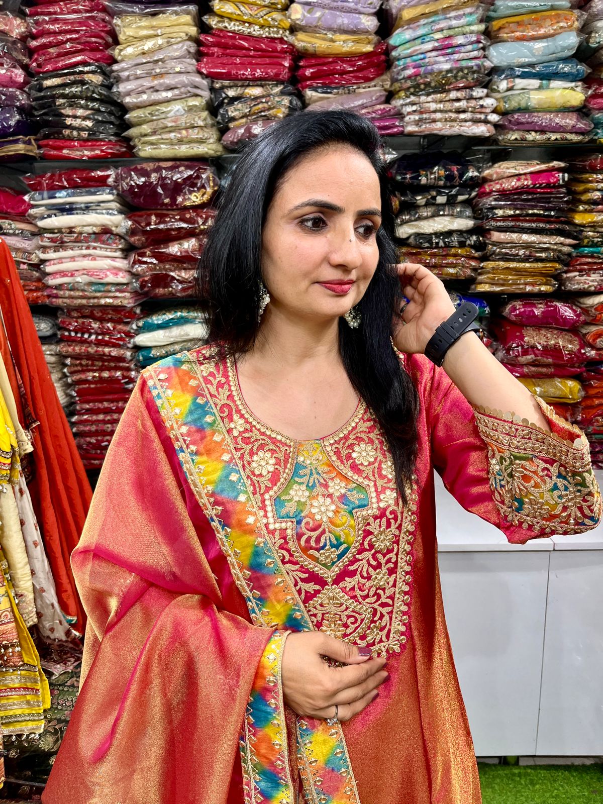 Be the first to review “Designer Tissue Shimmer A Line Suit Set”