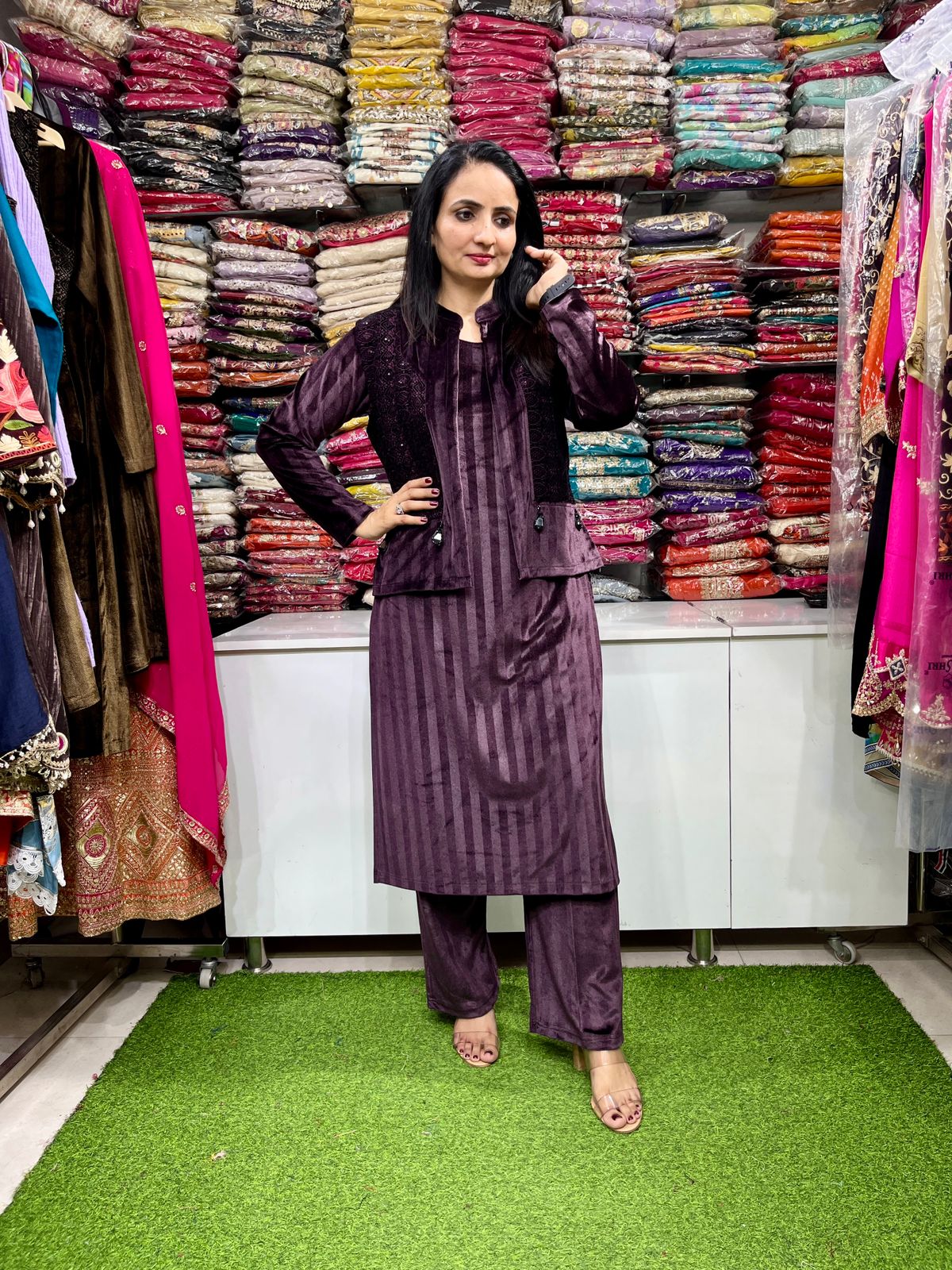 Be the first to review “Designer Velvet Coord Set with Jacket”