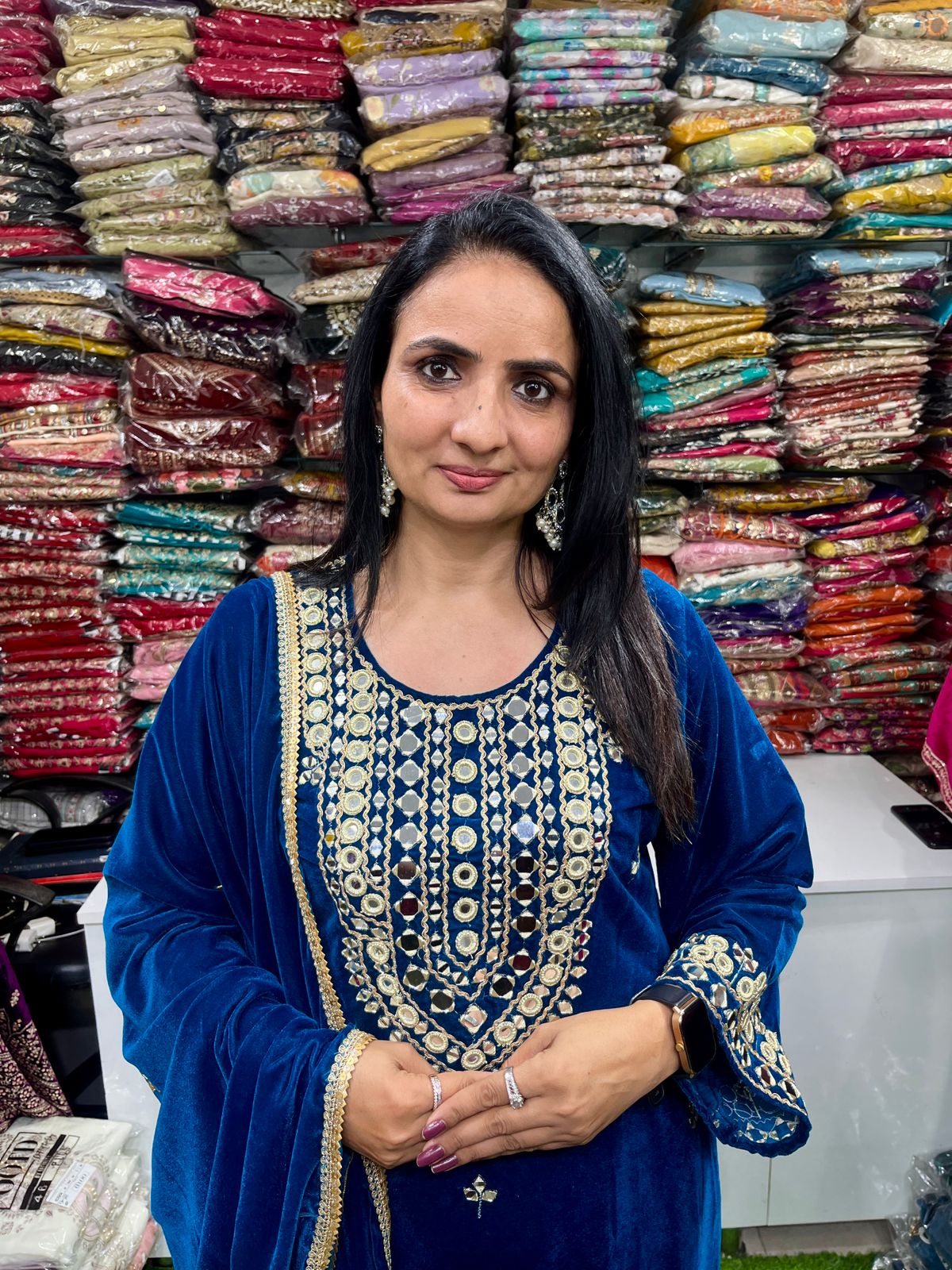 Designer Velvet Suit Set with Real Mirror Work