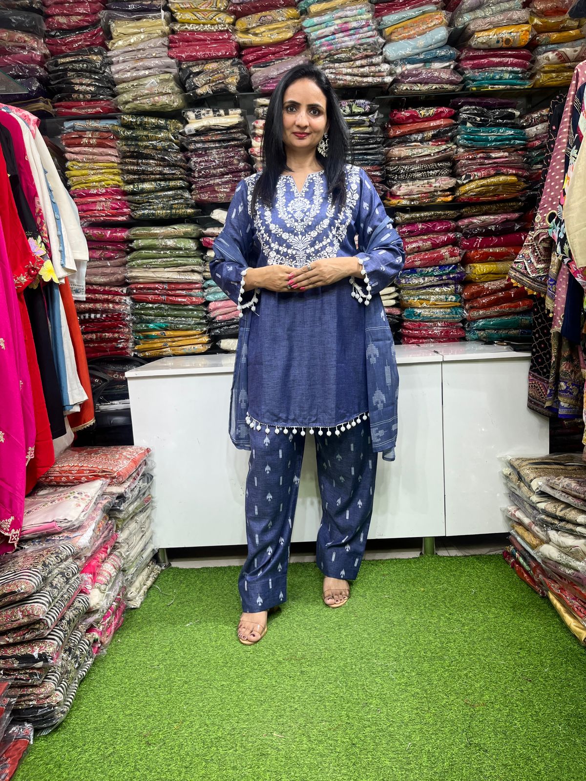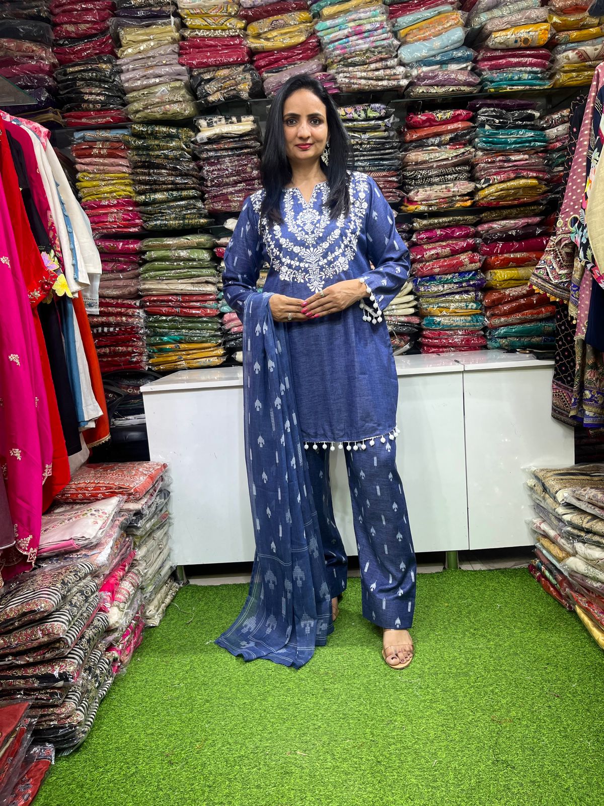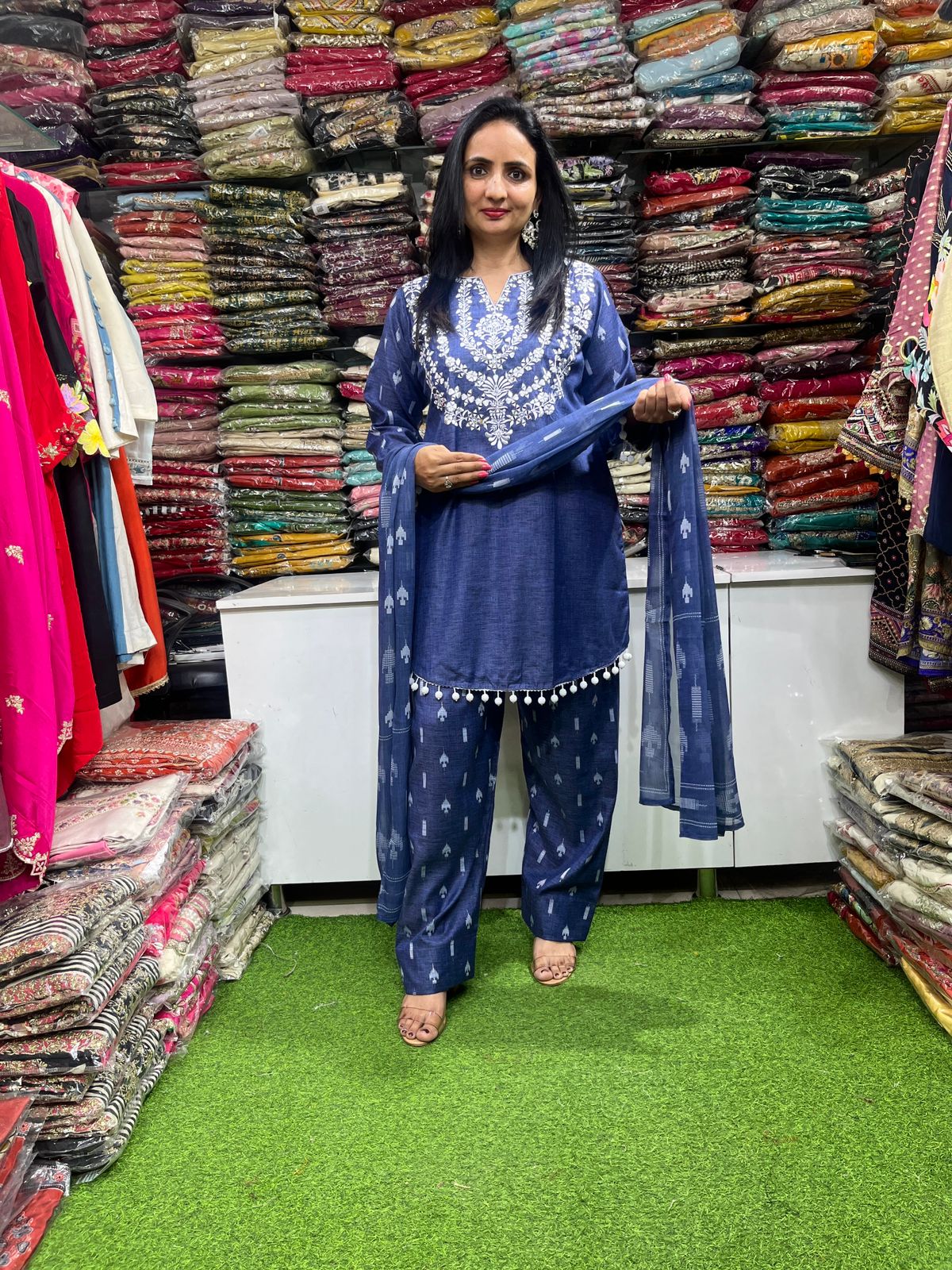 Premium Demin Blue Farsi Suit Set