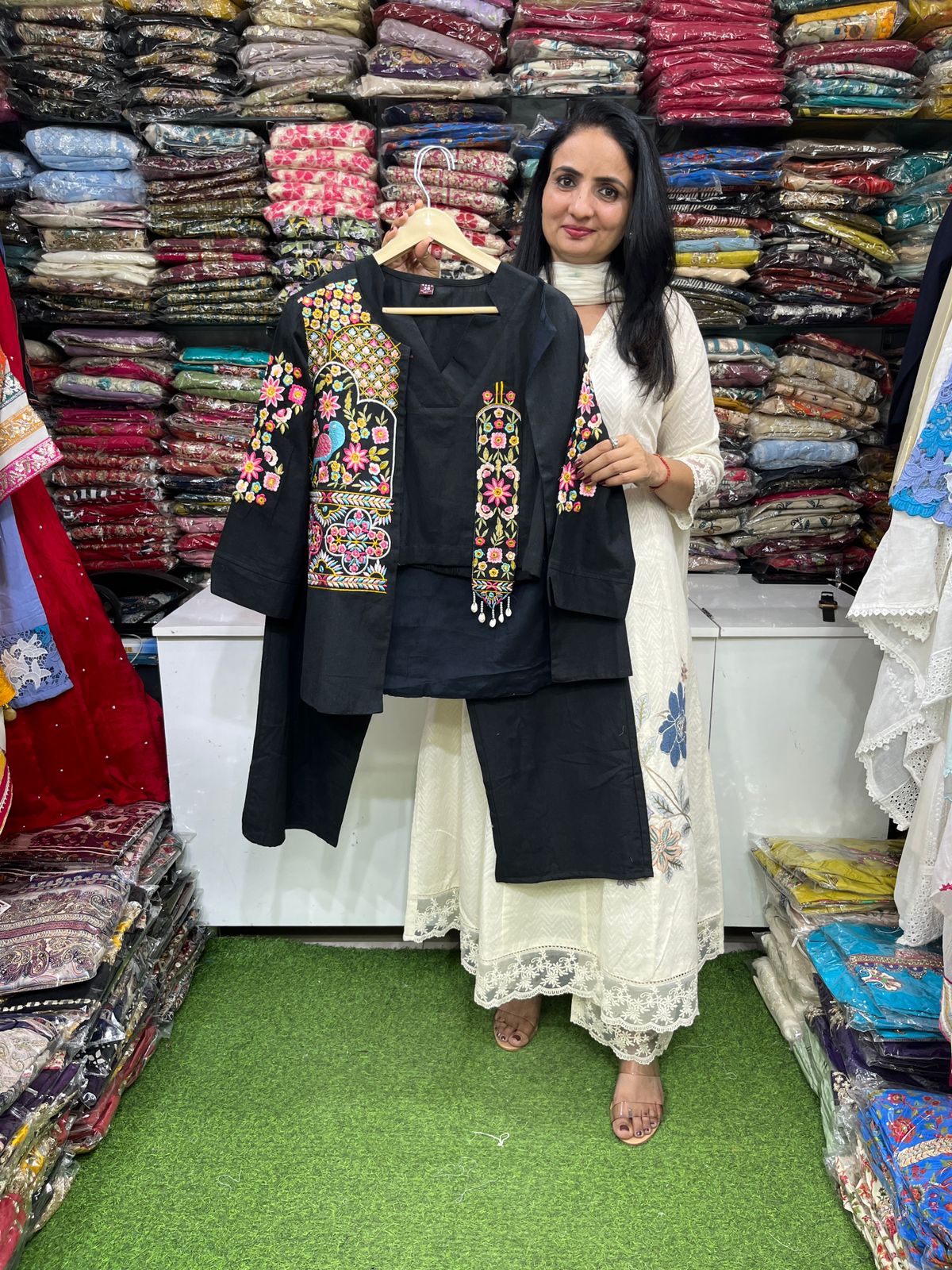 Premium Khadi Cotton 3 Peice Embroidered Coord Set