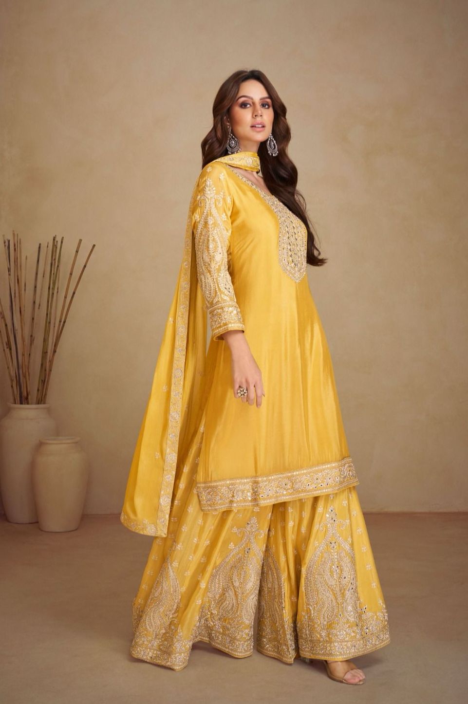 Designer Pakistani Fully Embroidered Partywear Suit with Designer Plazzo and Heavy Dupatta.