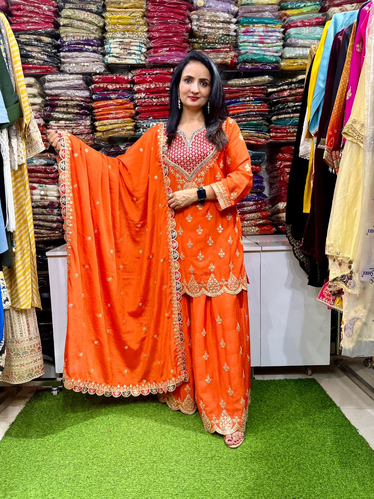 Pure Chinon Party Wear Zari Embroidered Suit Set