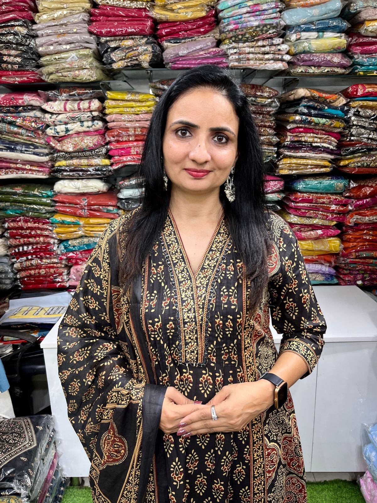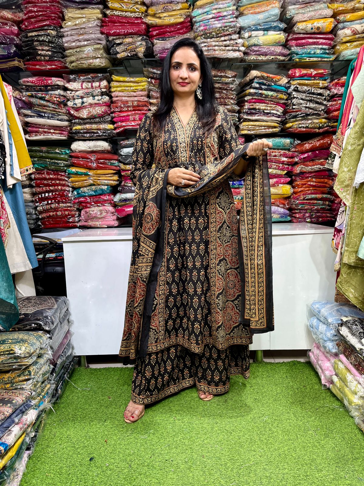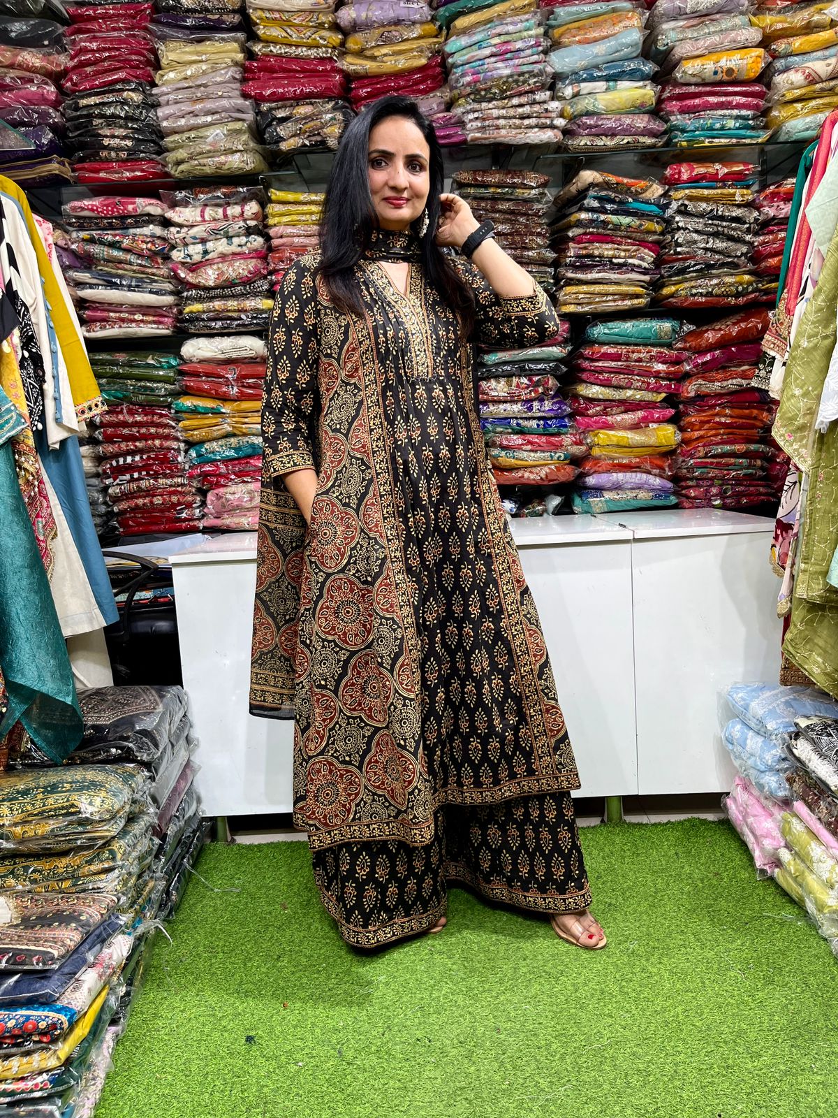 Pure Cotton Black Anarkali Set