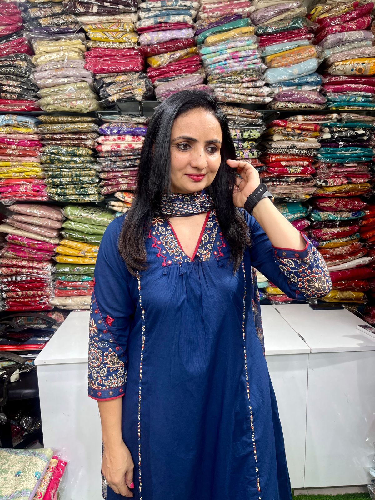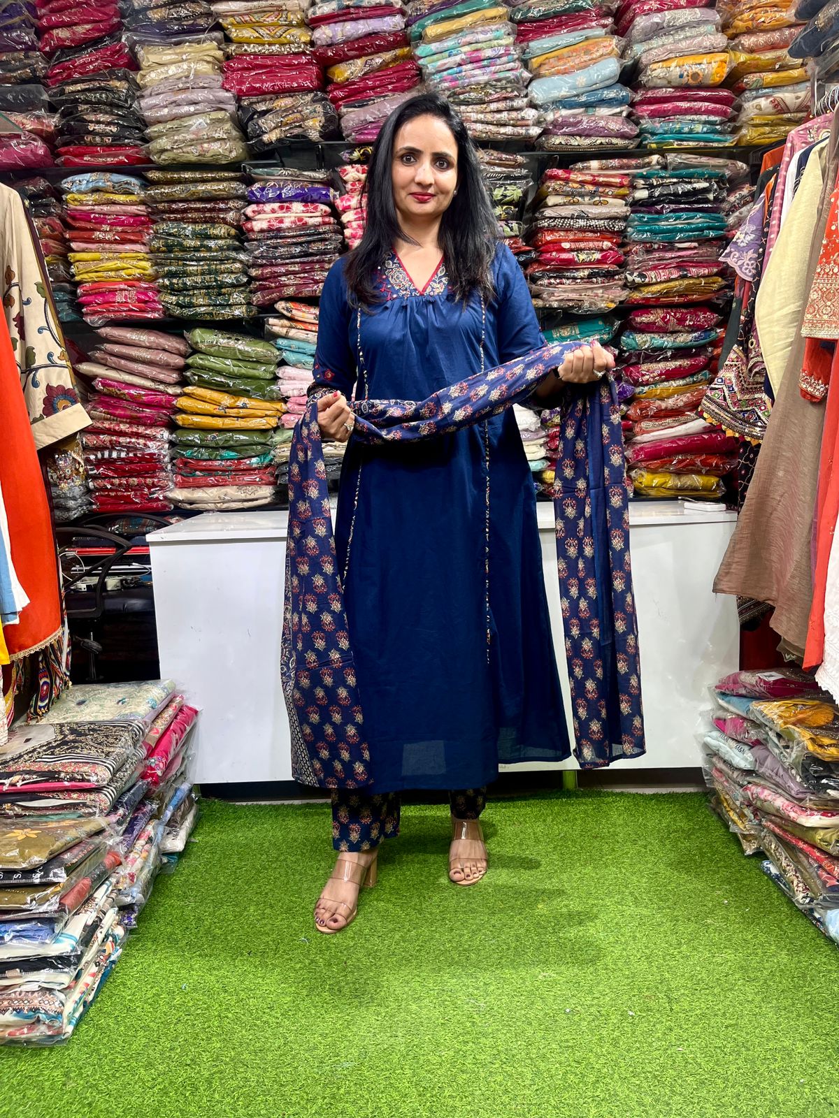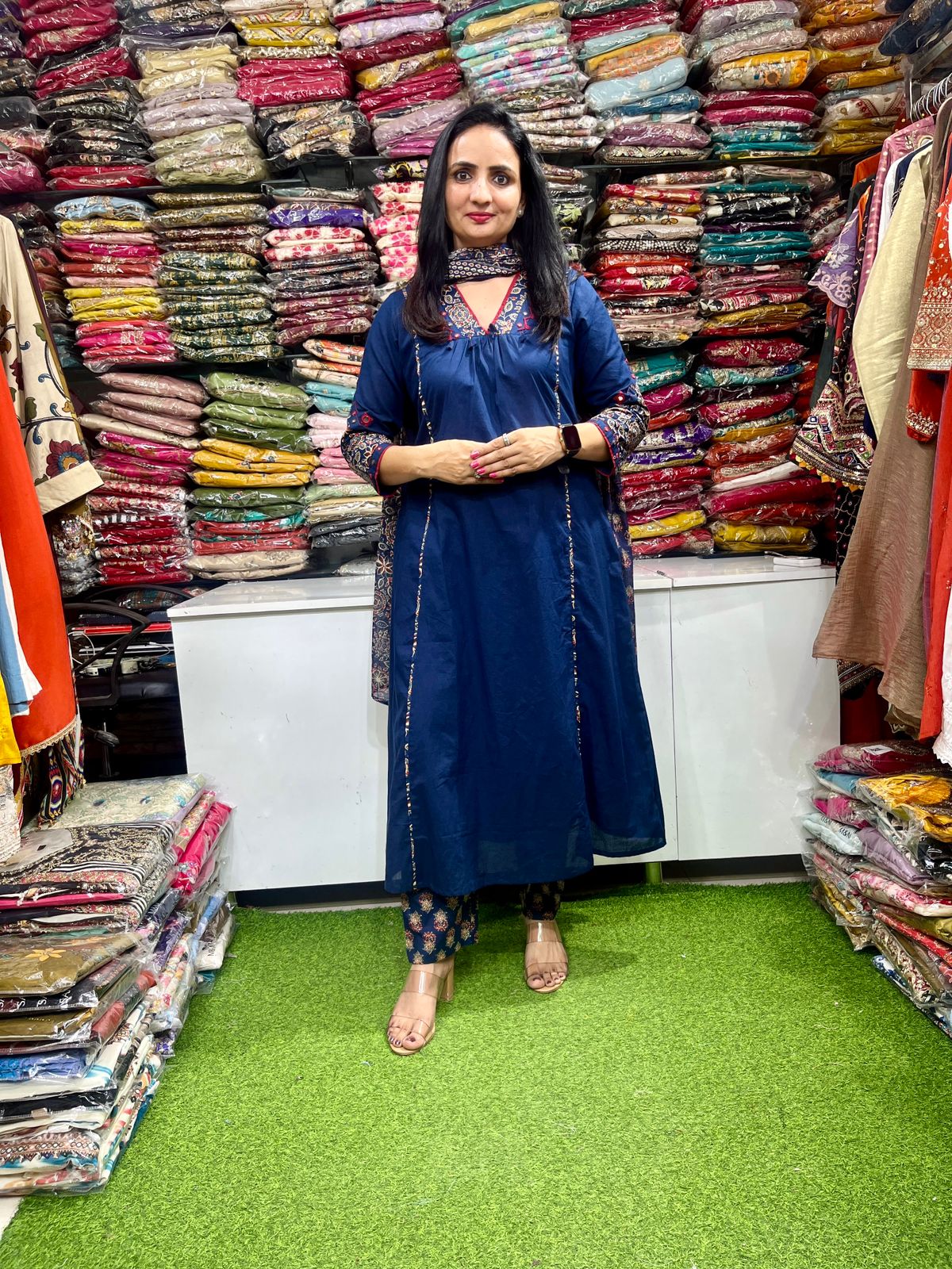 Pure Cotton Blue A Line Suit Set