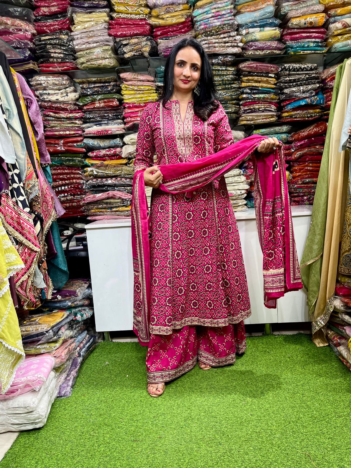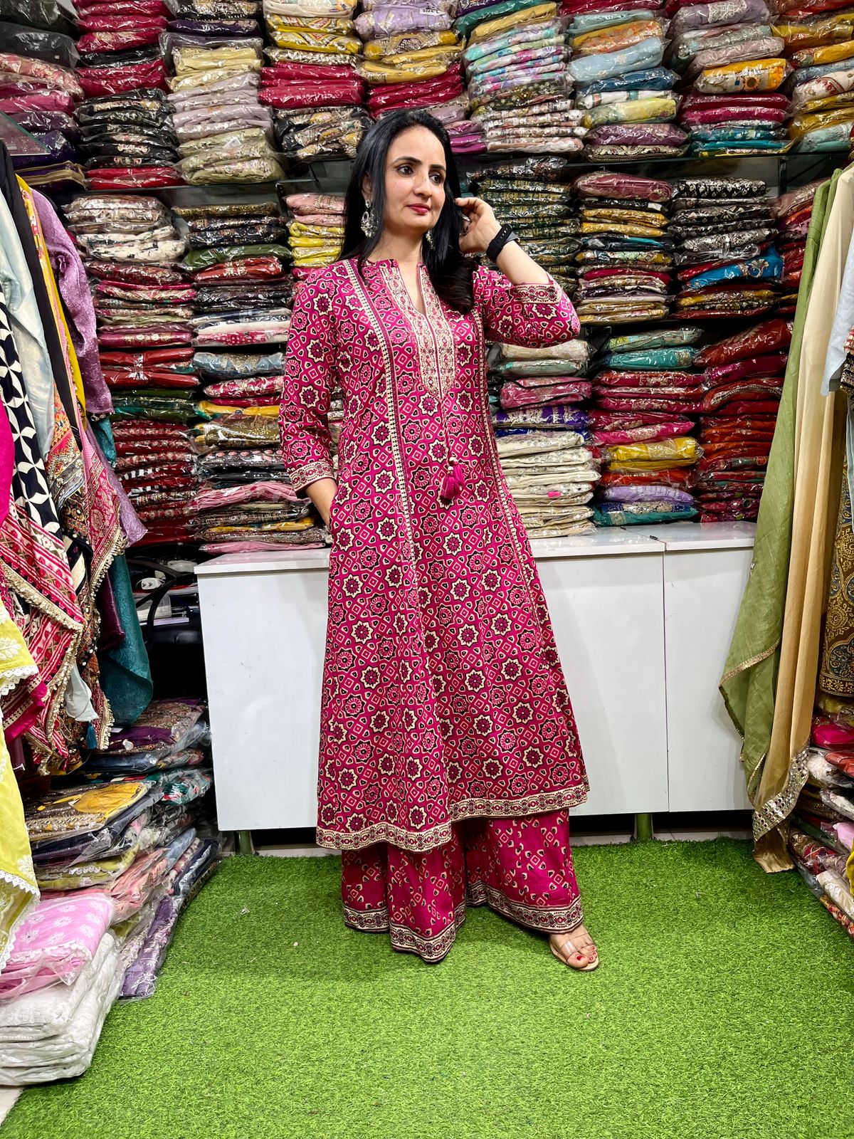 Pure Cotton Designer Suit Set with Flaired Plazzo
