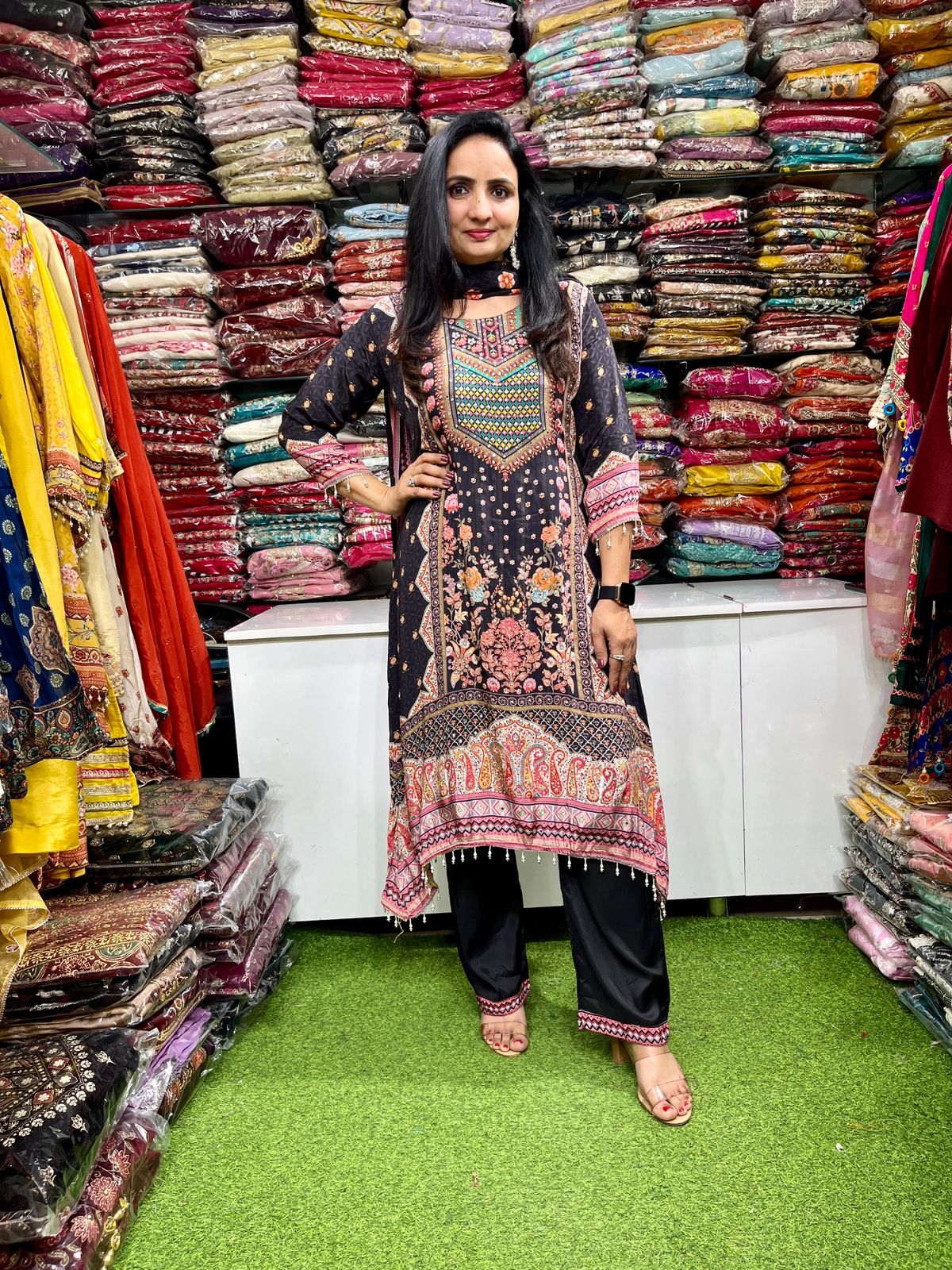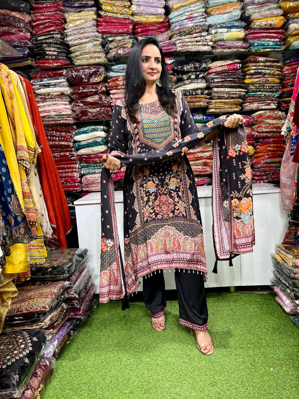Pure Crape C Cut Black Suit Set