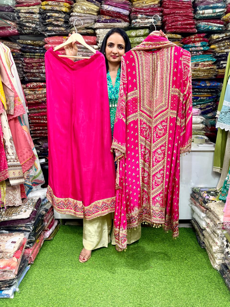 Pure Crape Designer C Cut Suit Set