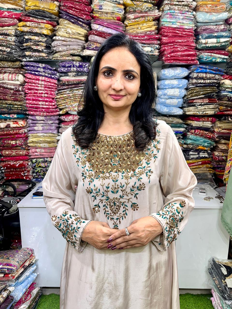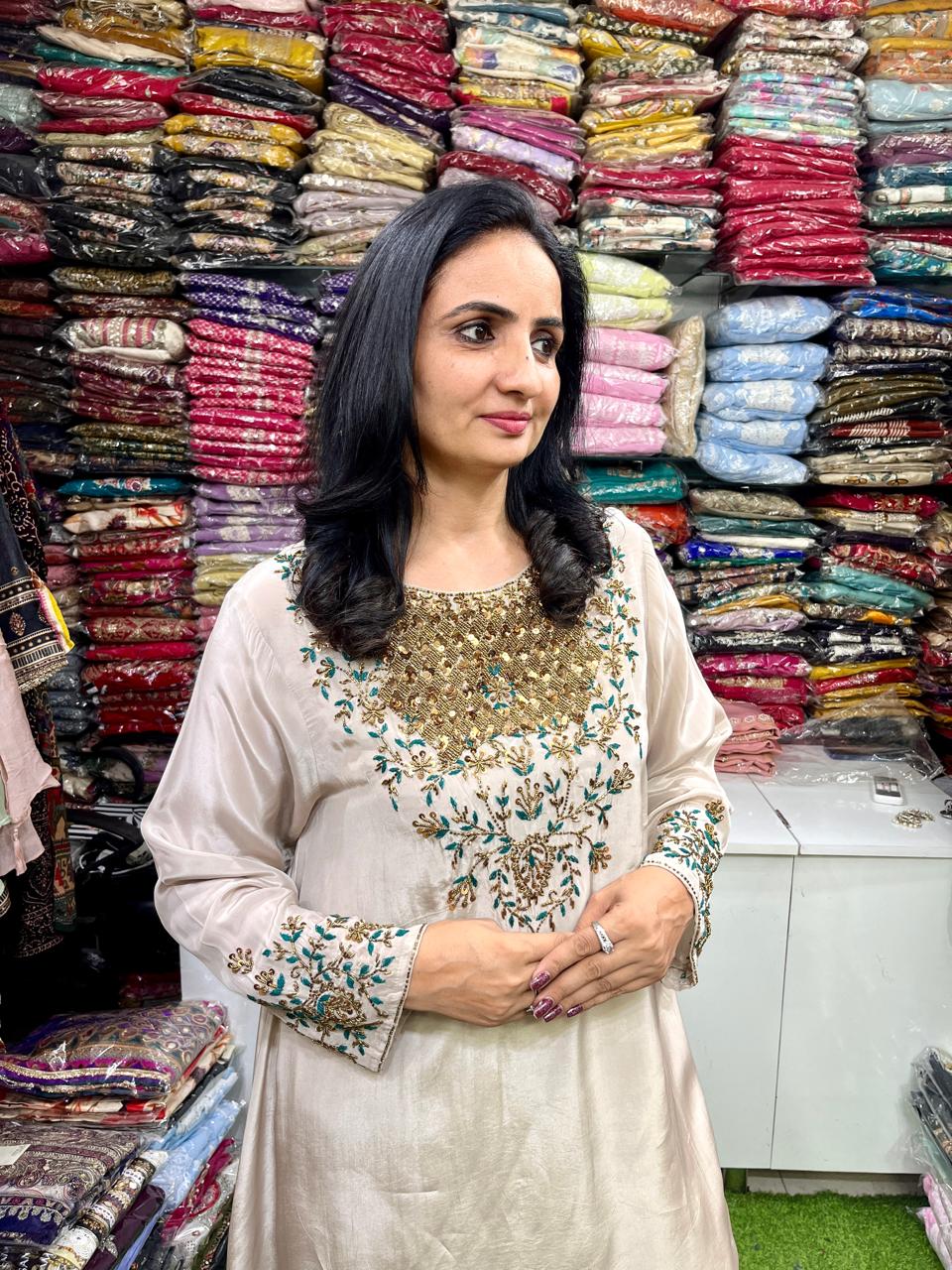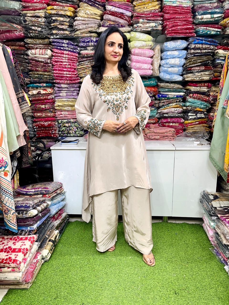 Pure Crape Designer Hand Embroidered Coord Set