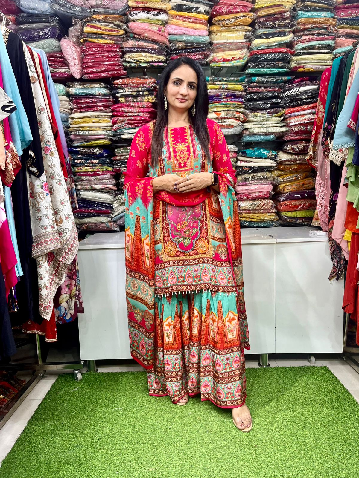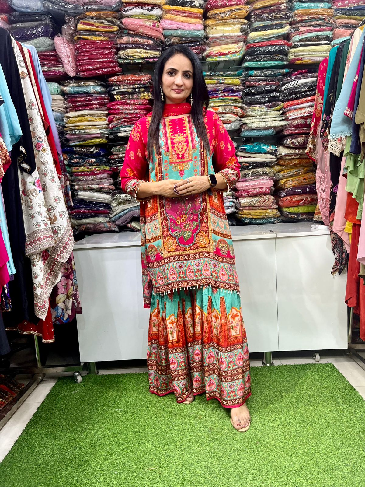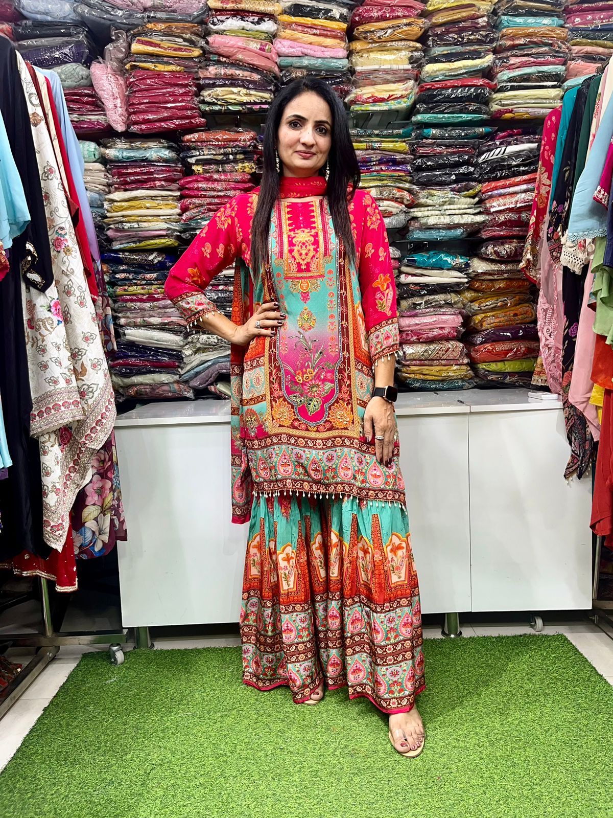 Pure Crape Digital Print Sharara Suit Set