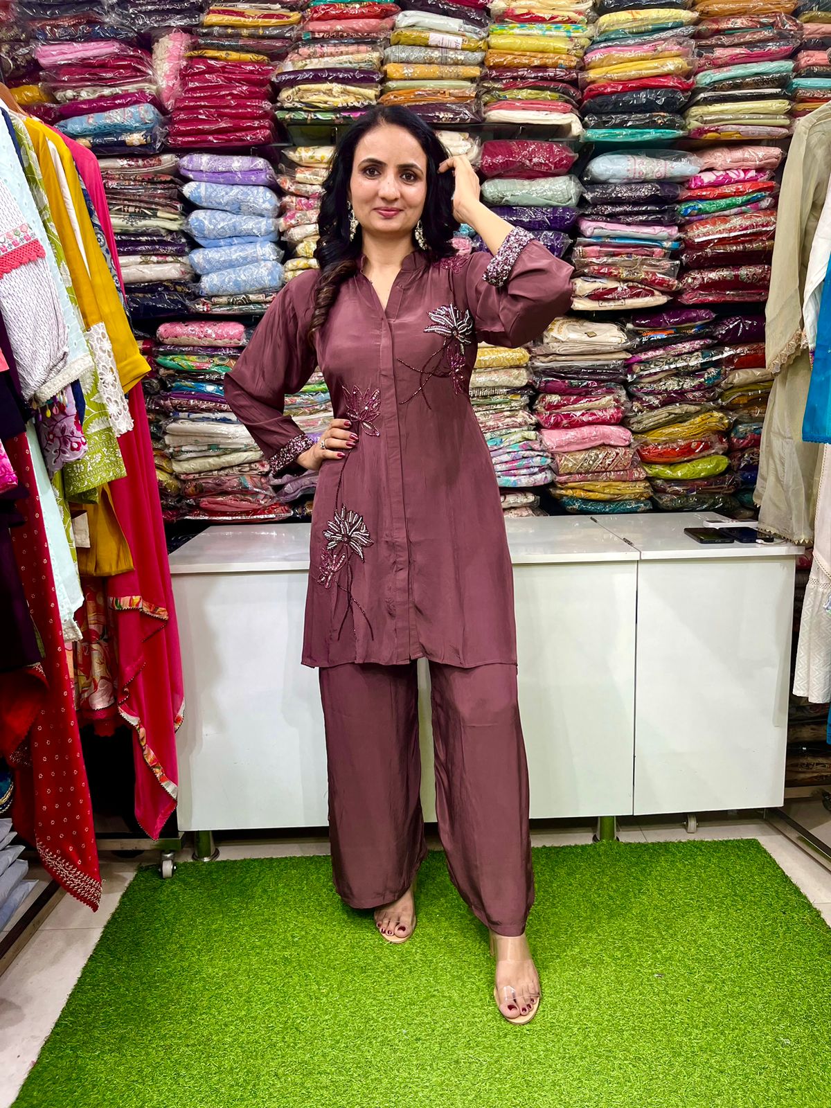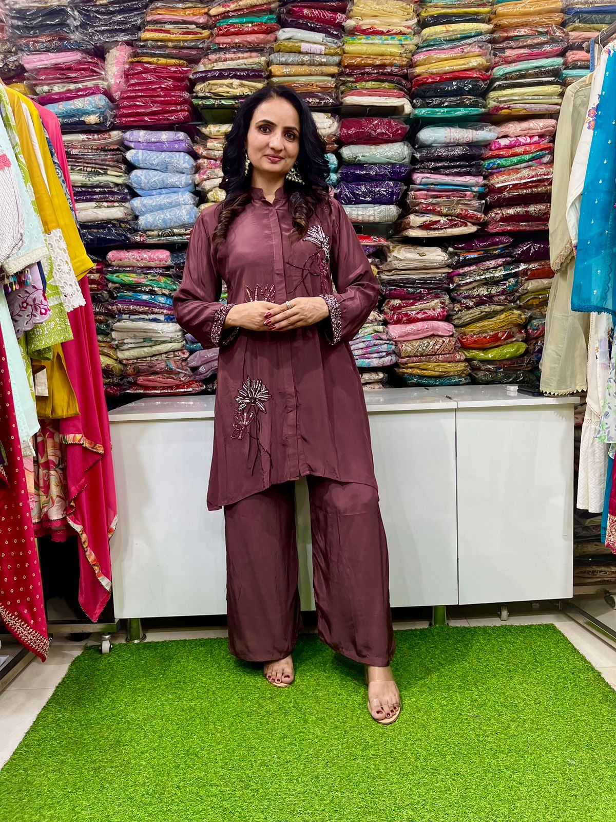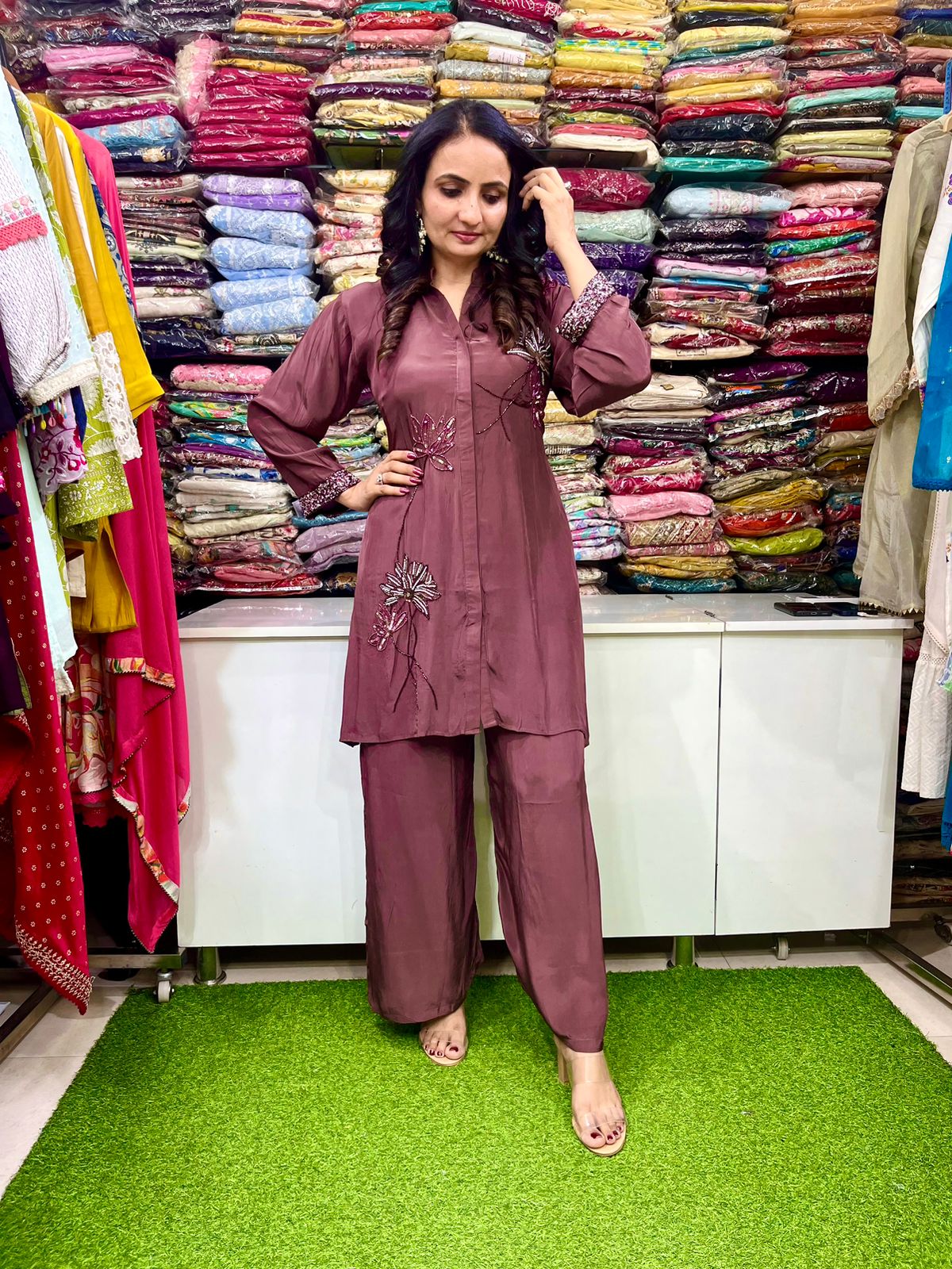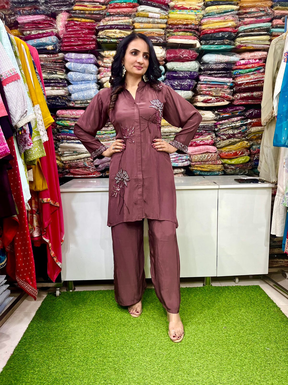 Pure Crape Hand Embroidered Coord Set